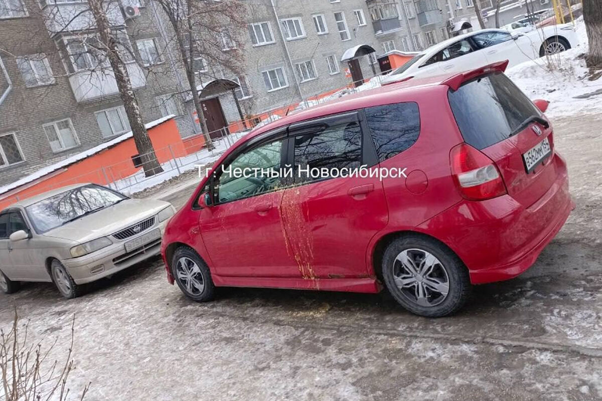 «В Ленинском районе Новосибирска пожилая женщина облила отходами припаркованную у забора красную «Хонду Фит». Это действие попало на подъездные камеры дома на Геодезической, 5/1», — говорится в сообщении.