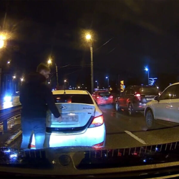Сообщается, что машина остановилась на проспекте Косыгина. Видеорегистратор автомобиля, водитель которого стал очевидцем, запечатлел инцидент. На кадрах видно, как мужчина выходит из машины, снимает номер, кладет его в багажник и уезжает. Уточняется, что после этого автомобиль Hyundai Solaris выехал на выделенную полосу для общественного транспорта.