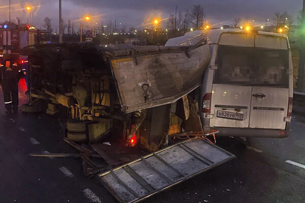 До этого сообщалось, что на Московском шоссе машина полиции попала в массовую аварию. На размещенных в сети кадрах видны перевернутый грузовик, «Газель» и сильно поврежденное авто полиции.