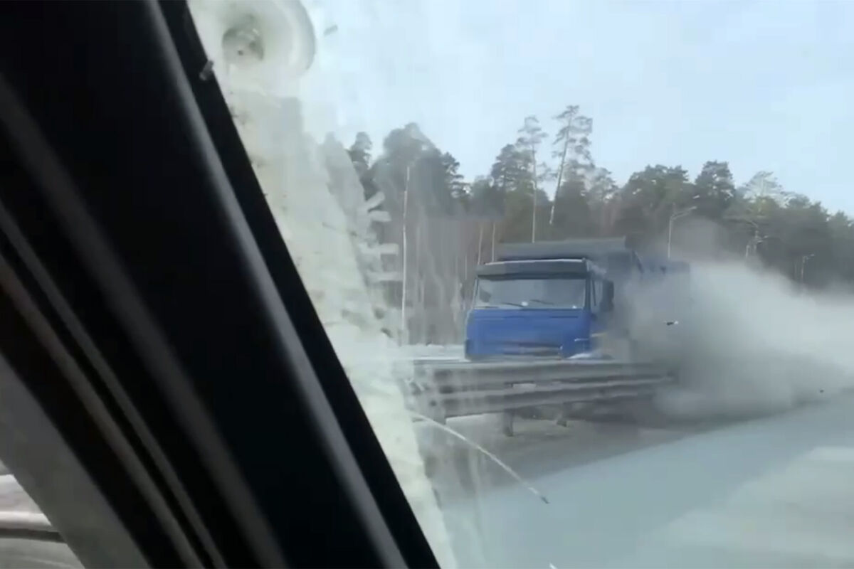 Очевидцы запечатлели инцидент. На кадрах видно, как грузовик едет по трассе, при этом задевает дорожные ограждения, от чего поднимается пыль. По данным источника, «КамАЗ» проехал так полтора километра, повредив около 150 секций забора. В ДТП никто не пострадал.