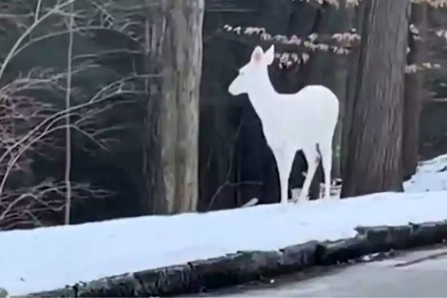 В США в штате Северная Каролина автомобилисты запечатлели оленя-альбиноса. Видео появилось в социальных сетях.
