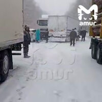 «В замесе на трассе Хабаровск – Комсомольск-на-Амуре оказались не меньше шести машин. Очевидцы говорят, что тягач, груженный древесиной, решил обогнать грузовик и выехал на встречку — в итоге три многотонника столкнулись на серпантине», — говорится в сообщении.