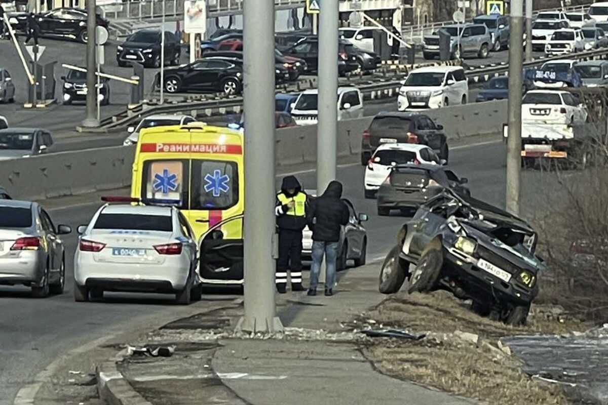«Со слов водителя Jimny, дорогу перебегала собака, и, чтобы избежать столкновения, выкрутил руль и несколько раз перевернулся», — отмечается в публикации.