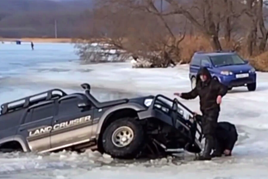 Очевидцы запечатлели инцидент на камеру. На кадрах видно, как автомобиль Toyota Land Cruiser провалился под воду и вмерз во льды. К машине подходят люди и осматривают ее. При этом на записи также видно, что на льду стоят другие автомобили.