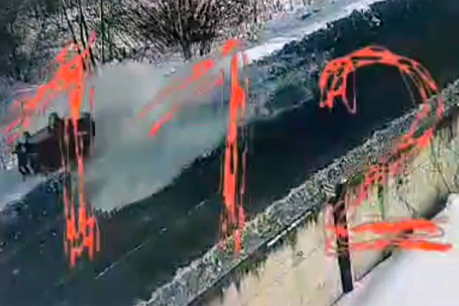 Уличная камера запечатлела инцидент. На кадрах видно, как автомобиль выезжает на тротуар, переворачивается и наезжает на двух пешеходов.