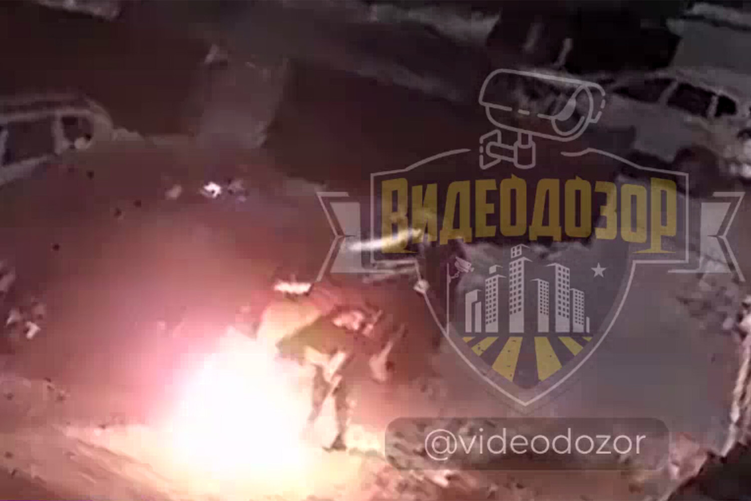 Уличные камеры запечатлели инцидент. На кадрах видно, как мужчина подходит к припаркованному автомобилю и поджигает его. Через некоторое время к месту происшествия приезжают спасатели.