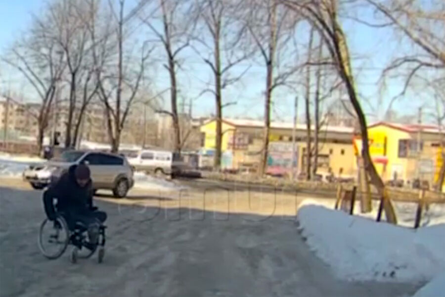 В Хабаровске инвалид-колясочник застрял на пешеходном переходе из-за неубранного снега. Об этом сообщает Telegram-канал Amur Mash.