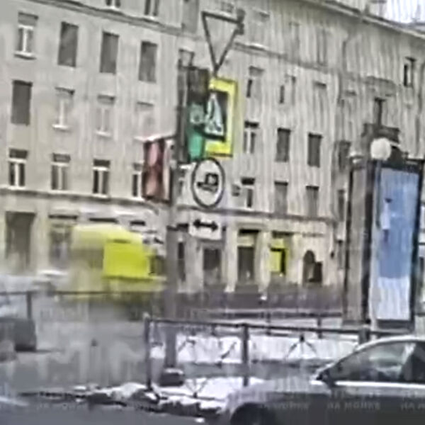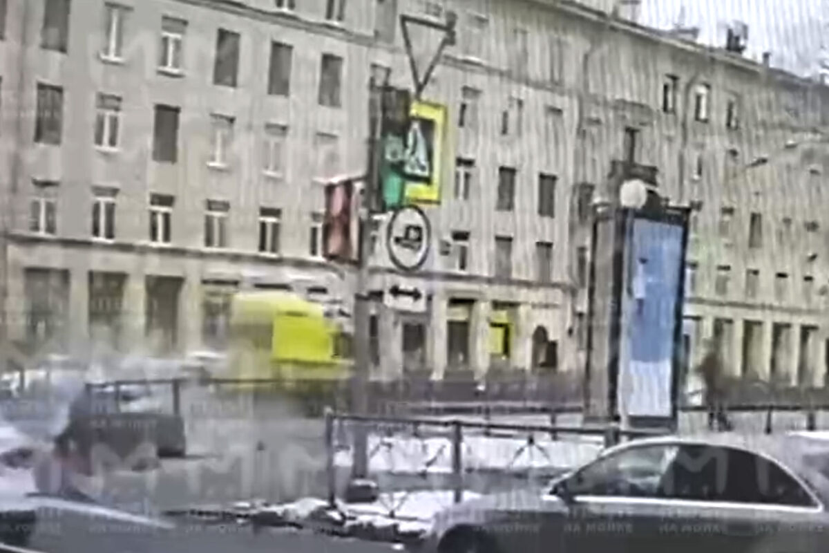 В Петербурге на видео попало, как реанимобиль врезался в Ford и снес забор