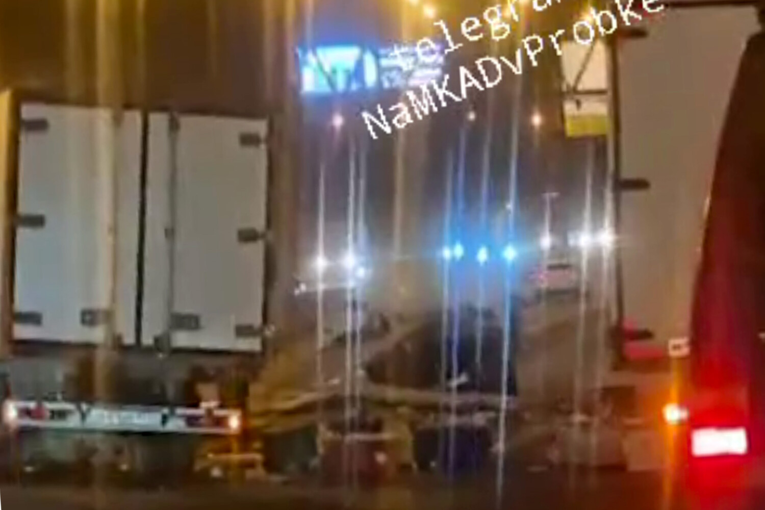 На видео сняли грузовики, из-за которых частично перекрыли МКАД