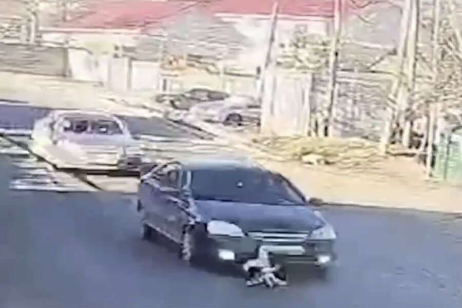 На кадрах видно, что животное выбежало на дорогу с прилегающей территории в частном секторе и попало под колеса седана черного цвета. Водитель машины затормозил, после этого в него сзади врезался седан синего цвета. Собака после этого выбралась из-под автомобиля и убежала на другую сторону улицы.