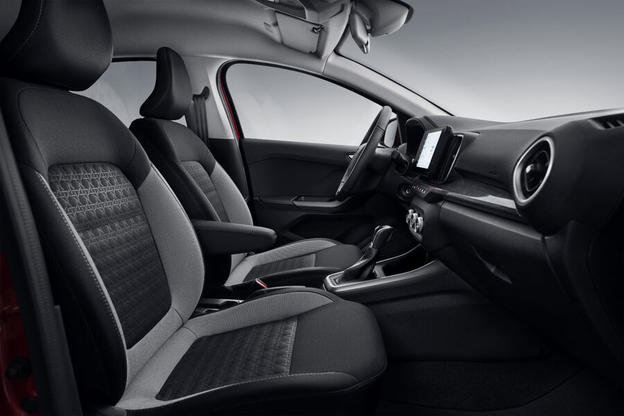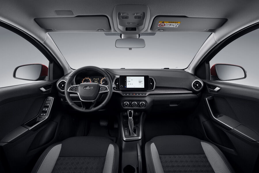 Руль Lada Iskra регулируется по наклону и вылету, сиденья с анатомическим профилем будут доступны с двумя вариантами обивки — в черно-серой цветовой гамме или с контрастной прострочкой и цветными вставками.