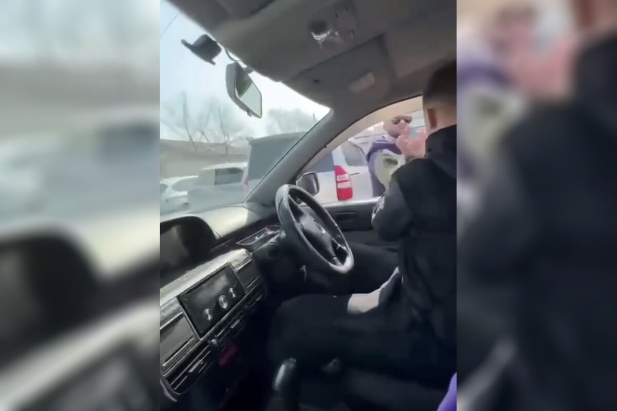 Пассажирка Nissan X-Trail запечатлела инцидент на камеру. На кадрах видно, как водителей автомобиля Toyota Noah подходит к мужчине за рулем Nissan и начинает его бить, при этом кричит и оскорбляет своего оппонента. Женщина, которая ведет съемку, просит проезжающих водителей о помощи, а конфликтующие продолжают драку. Далее на записи видно, что у водителя автомобиля Nissan X-Trail разбито лицо.