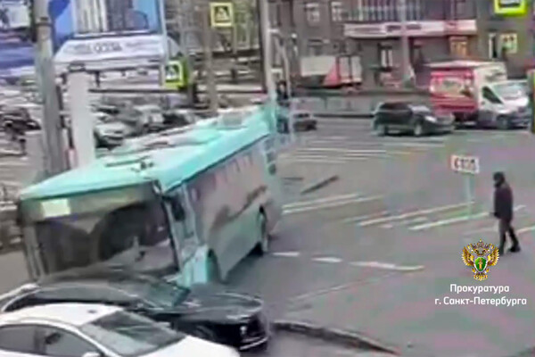 Момент жесткого ДТП с автобусом, влетевшим в петербуржцев, попал на видео