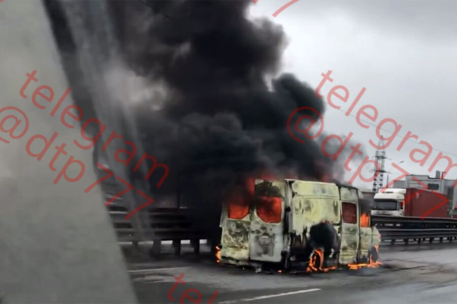 В Подмосковье на видео сняли горящую на шоссе «Газель»