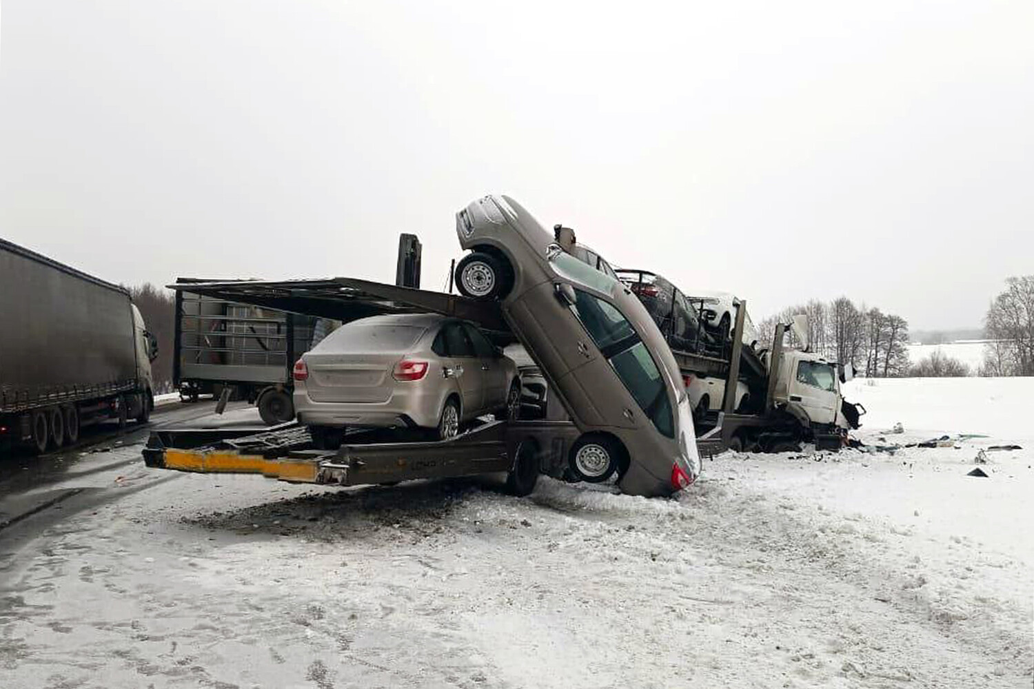 До этого автовоз, перевозивший новые китайские автомобили, протаранил грузовик в Дзержинске Нижегородской области.