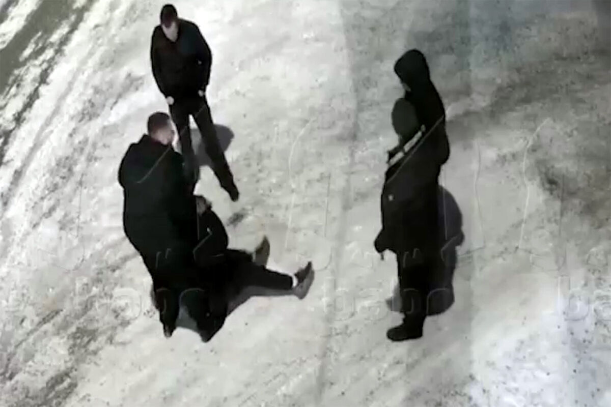 Уличная камера запечатлела инцидент. На кадрах видно, как несколько мужчин избивают таксиста, при этом толкают его на землю и продолжают наносить удары. Далее мужчина поднимается, но злоумышленники снова толкают его и начинают пинать, тогда пострадавший теряет сознание.