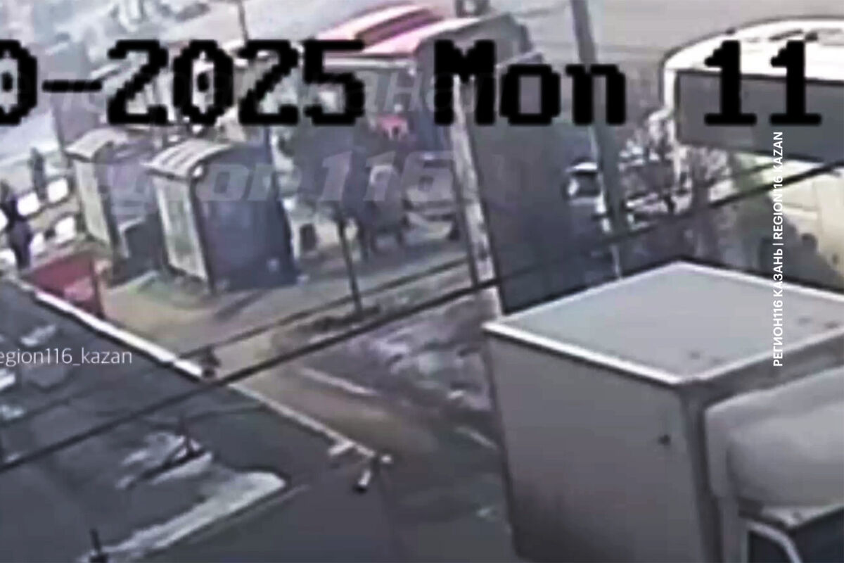 Telegram-канал «Регион116 Казань» опубликовал кадры наезда автомобиля такси на людей, выходивших из автобуса.