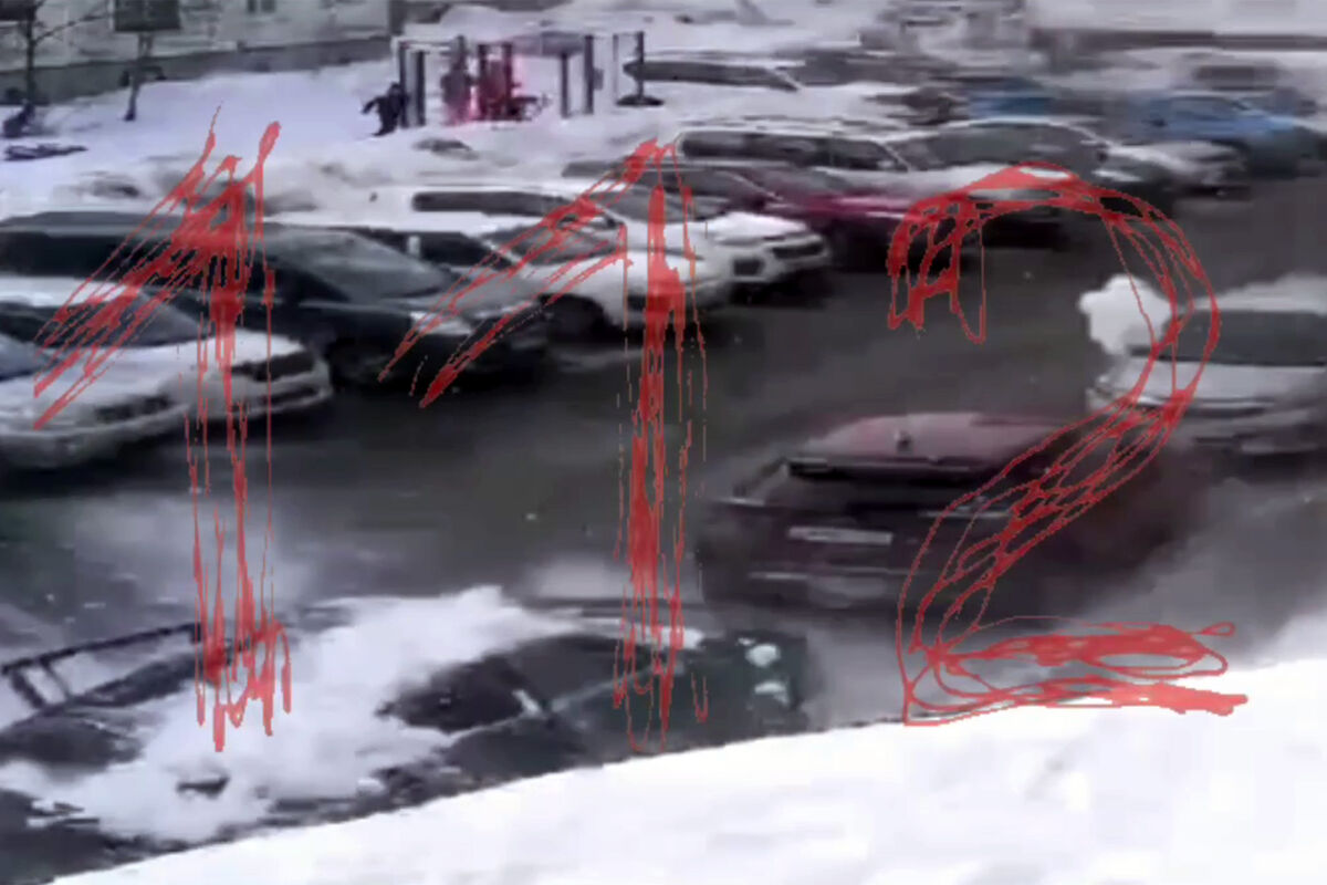 В Южно-Сахалинске снежная глыба упала на припаркованный автомобиль. Об этом сообщает Telegram-канал 112.