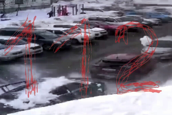 Уличные камеры запечатлели инцидент. На кадрах видно, как снежная глыба падает на автомобиль. Далее на записи, сделанной очевидцем, видно, что у машины разбито лобовое стекло, а также сломана крыша, из-за чего снег упал в салон автомобиля.