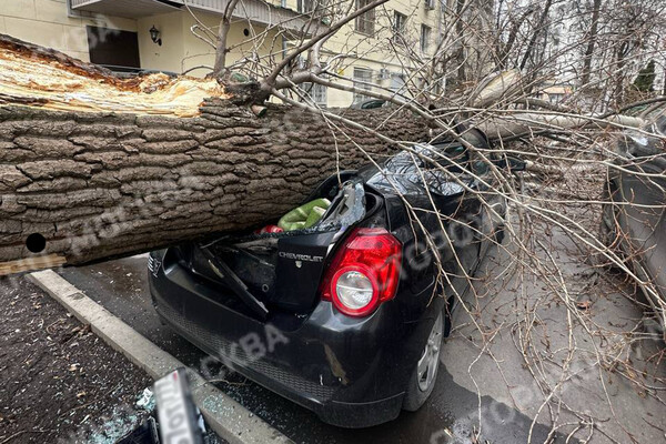 В столице сильный ветер повалил деревья на автомобили. Об этом сообщает Telegram-канал «Осторожно, Москва».