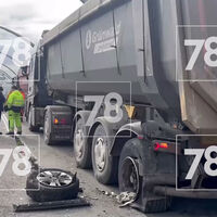 В Санкт-Петербурге «легковушка» врезалась в самосвал на Западном скоростном диаметре (ЗСД). Об этом сообщает издание 78.ru.