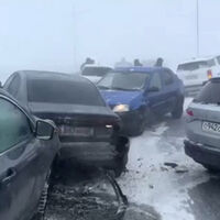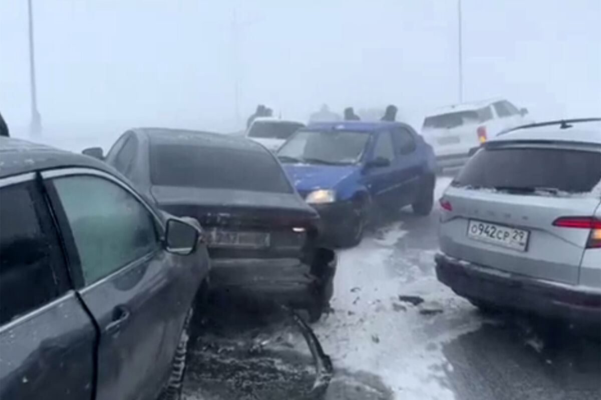Из-за плохой погоды на мосту сначала столкнулись три автомобиля, затем в них стали врезаться другие машины. На видеозаписи с последствиями ДТП видно, что на мосту находится более десятка разбитых автомобилей, включая машину скорой помощи, легковые седаны и кроссоверы. Некоторые из машин навалились на ограждения. Мимо них идут люди. В районе места массовой аварии дует сильный ветер и идет снег.