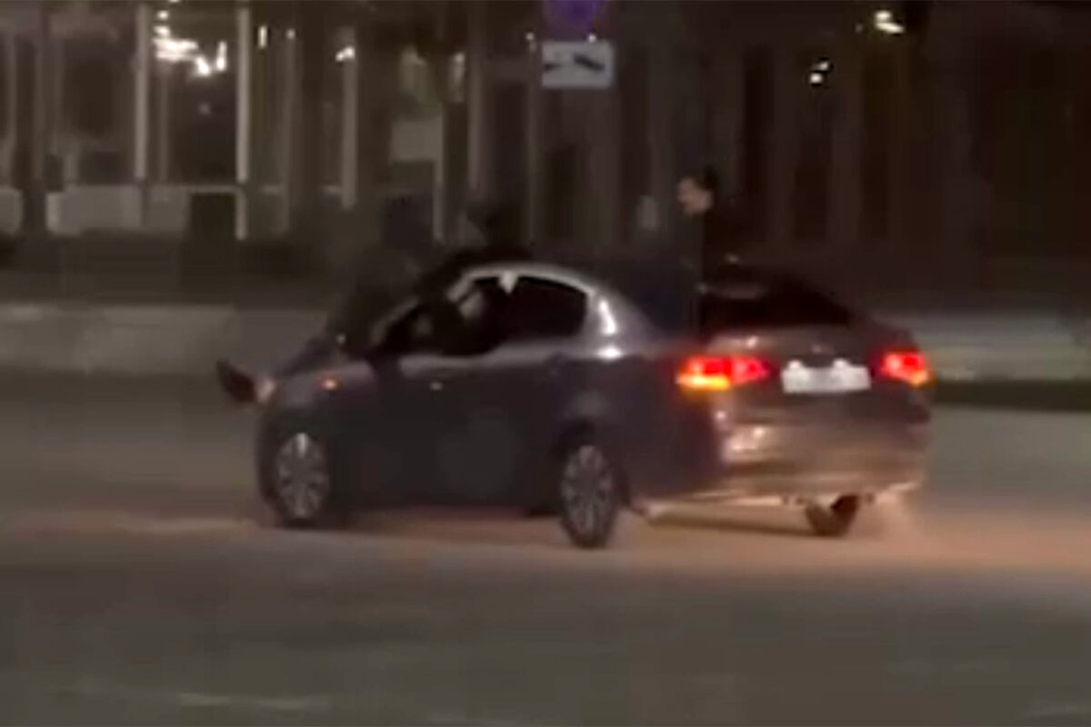 «Покатушки на капоте — новый тренд дрифтеров с парковки у Кремля. Но его тут же не поделили», — говорится в сообщении.