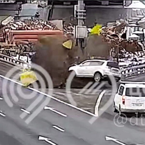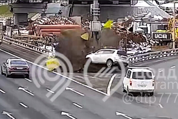 Уличная камера запечатлела инцидент. На кадрах видно, как белый автомобиль сталкивается с проезжающим грузовиком, потом врезается в дорожное ограждение и в столб. Рядом с местом столкновения останавливается другая машина, из которой выходит человек. На записи также видно, что в результате ДТП белый автомобиль получил повреждения.