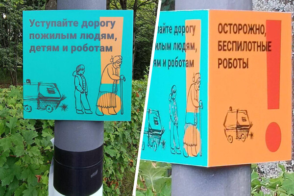 В Москве появились таблички с просьбой уступать дорогу роботам