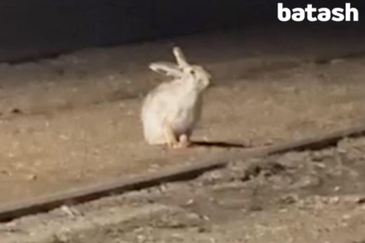 Очевидцы запечатлели инцидент на видео. На кадрах видно, что заяц сидит на остановке. После чего начинает прыгать и убегает.