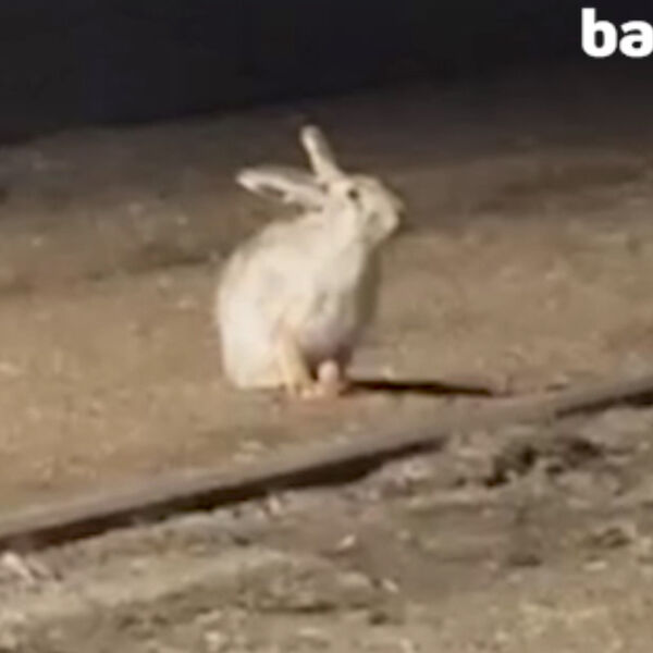 В Башкирии заяц прыгал на трамвайной остановке. Об этом сообщает Telegram-канал Mash Batash.