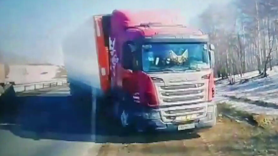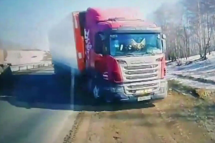 Видеорегистратор «Газели» запечатлел инцидент на видео. На кадрах видно, как большегруз выезжает на встречную полосу движения и врезается в «Газель».