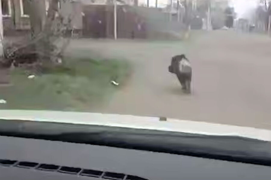 Пассажиры автомобиля запечатлели инцидент на видео. На кадрах видно, как кабан бежит по дороге. По словам автора видео, рядом находились дети, и животное могло на них напасть.