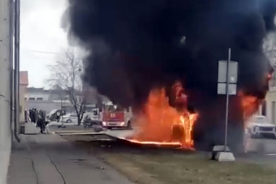 По данным канала, речь идет об автобусе № 151. Транспортное средство уже потушили сотрудники МЧС. На фото с места происшествия видно, что от него остался обгоревший остов.