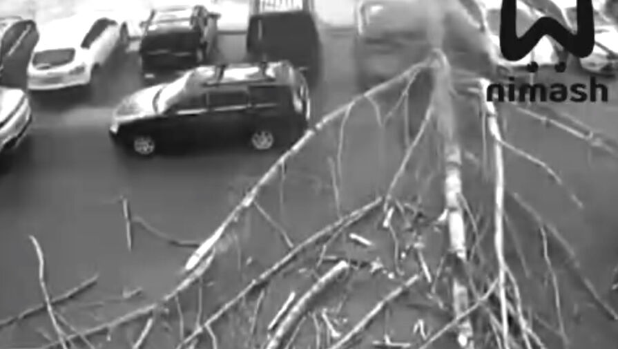Уличная камера запечатлела инцидент. На кадрах видно, как дерево падает на припаркованные автомобили.