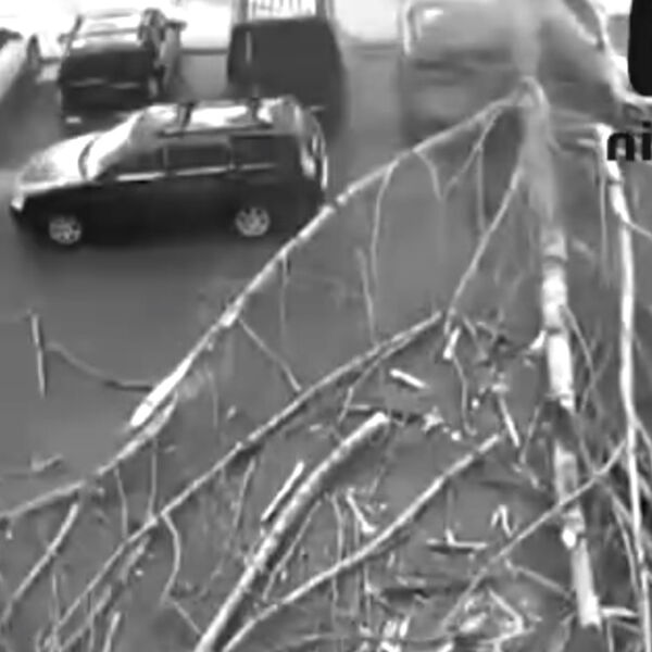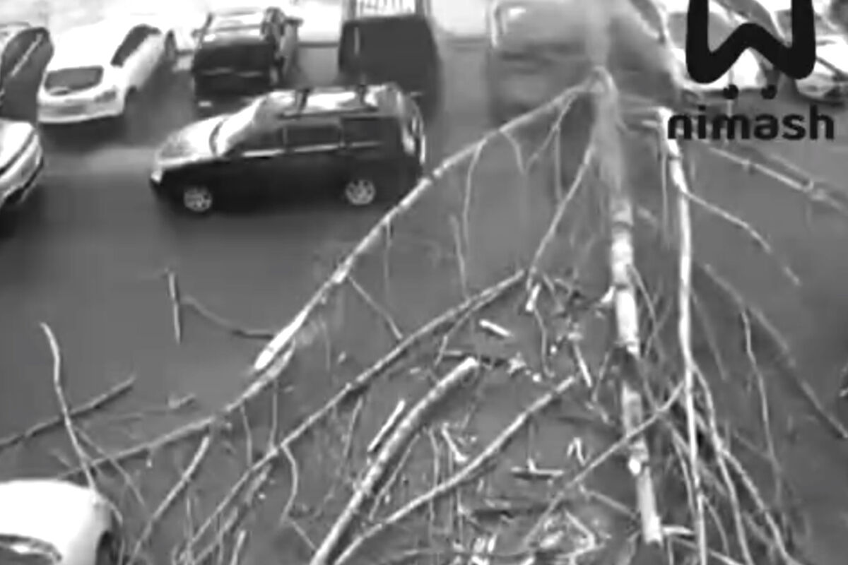 Уличная камера запечатлела инцидент. На кадрах видно, как дерево падает на припаркованные автомобили.