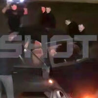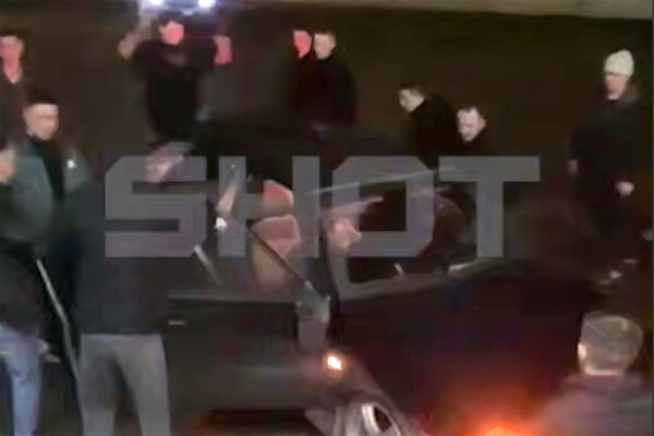Очевидцы запечатлели инцидент на видео. На кадрах видно, как люди пинают и ударяют по машине, при этом нарушители громко кричат. На другой записи видно, что автомобиль получил повреждения.