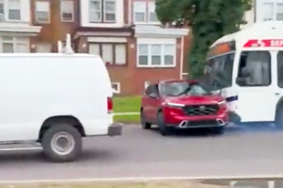 В Филадельфии (США) автобус несколько кварталов толкал по улице кроссовер Honda, развернутый поперек проезжей части. Об этом сообщает The Drive.