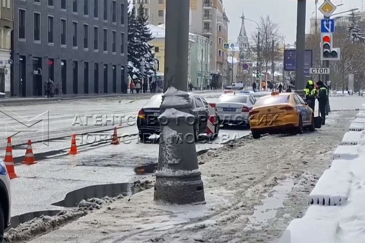 Telegram-канал «ДТП и ЧП Москва» опубликовал видео с моментом инцидента. На кадрах видно, как люксовый автомобиль сталкивается с такси, от чего вторая машина врезается в серый столб. На записи с места аварии видно, что у автомобиля такси поврежден капот и бампер. При этом люксовая машина серьезных повреждений не получила.