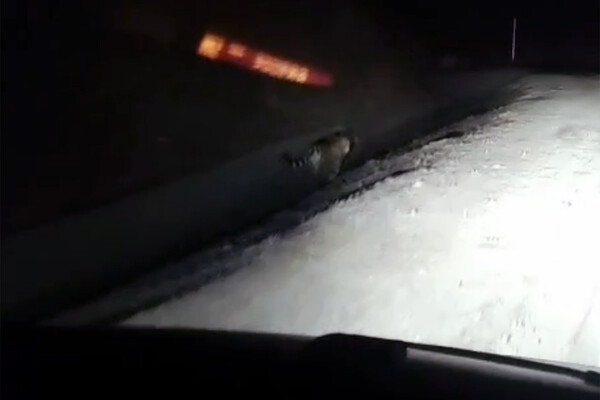 «Под Находкой заметили блуждающего по темной трассе полосатого хищника. Встреча с тигром состоялась в районе Козьмино, под Находкой. Водитель устроил преследование тигра, но тот долго не церемонился и ушел в лес по своим делам», — говорится в сообщении.