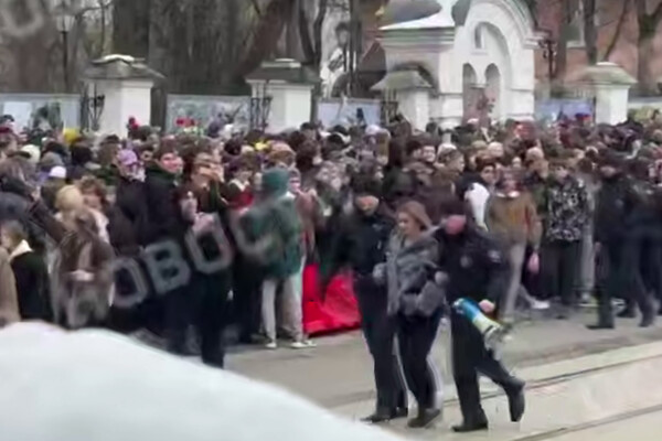 «Еще одно задержание возле храма, где идет прощание с Пашей Техником — силовики увели девушку, которая вышла на проезжую часть», — говорится в публикации.