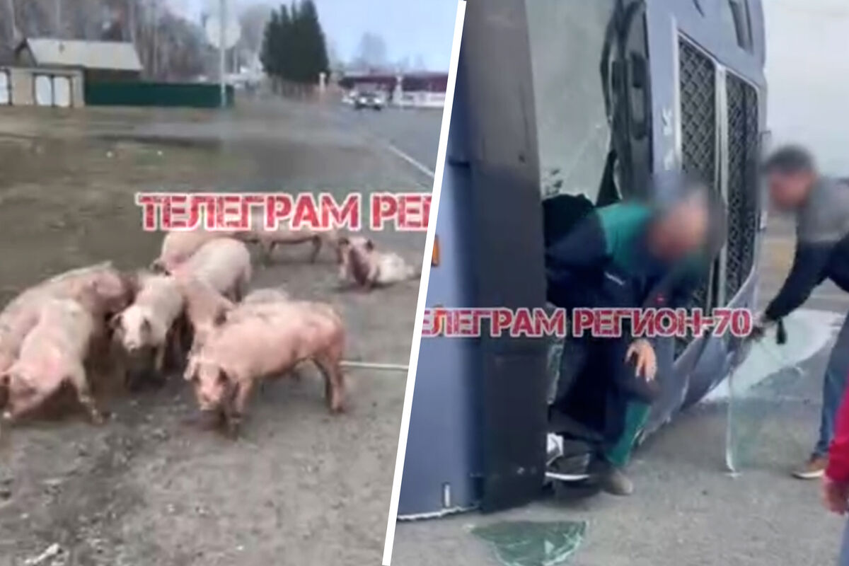 Отмечается, что инцидент произошел на трассе около села Мельниково. Фура опрокинулась на бок, из нее на дорогу выпали поросята. Часть из них разбежалась по селу.