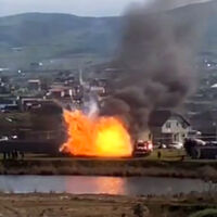 В Кирпичном поселке Каспийска взорвалась машина BMW Х5. Соседи говорят, что он застрял в канаве, пытался выехать, мотор загорелся, в газовый баллон попала искра и машина взорвалась», — говорится в сообщении канала.
