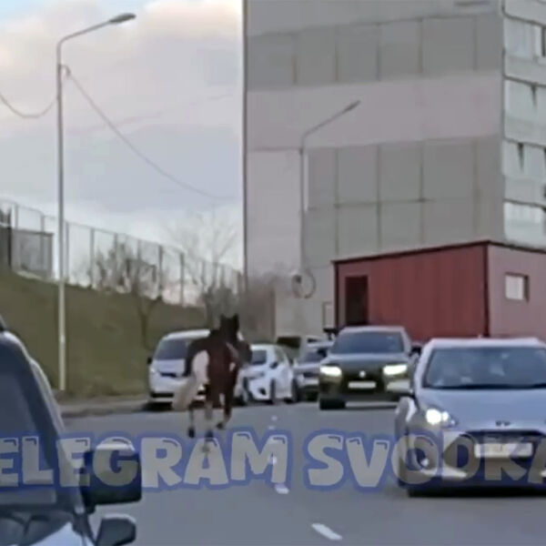 Очевидцы запечатлели инцидент на видео. На кадрах видно, как лошадь выбегает на встречную полосу движения, при этом из-за животного на проезжей части водители начинают сбавлять скорость.