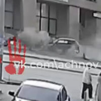 Уличная камера запечатлела момент столкновения. На кадрах видно, как легковой автомобиль врезается в машины. На записи с места ДТП также видно, что автомобили получили повреждения: сломаны капоты, бамперы, колеса, смяты кузова.