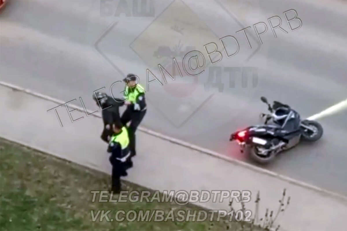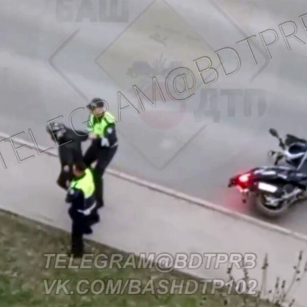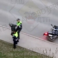 В Башкирии перед задержанием мотоциклист подрался с сотрудниками ДПС. Об этом сообщает Telegram-канал «БашДТП».