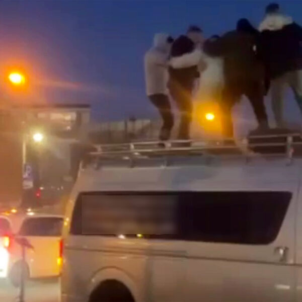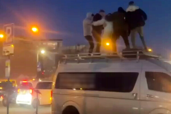 Очевидцы запечатлели инцидент на видео. На кадрах видно, как пять мужчин стоят на крыше транспорта и танцуют, от их движений микроавтобус шатается. На записи также видно, что вокруг нарушителей собралась толпа.