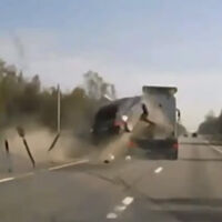«Регистратор одного из водителей снял, как тяжелый тягач поравнялся с седаном на Минском шоссе, а потом бортанул и, словно пушинку, развернул и бросил легковушку на ограждения», — говорится в сообщении.