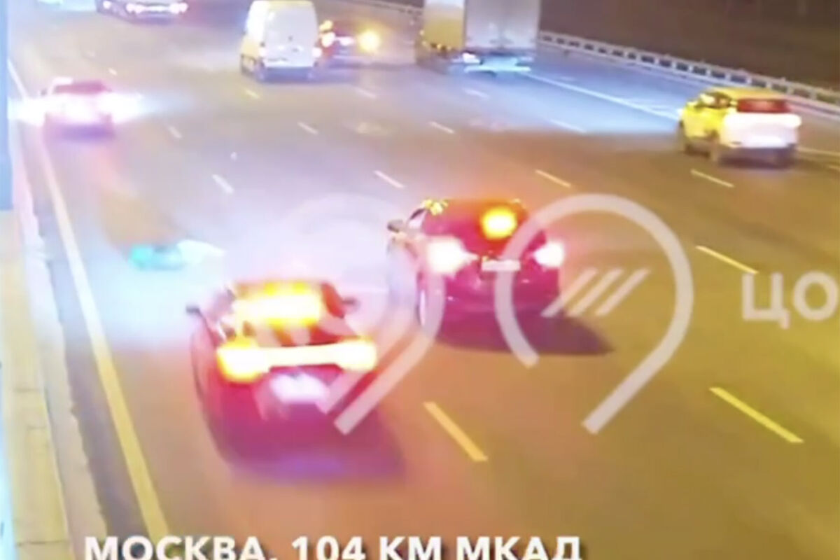 До этого сообщалось, что в Подмосковье тягач столкнулся с легковым автомобилем. На кадрах видно, как легковой автомобиль выезжает на соседнюю полосу движения, где сталкивается с тягачом, от удара первый таранит ограждение и перелетает через транспорт.
