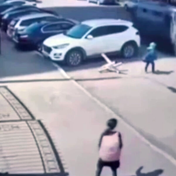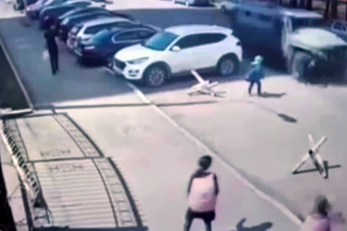 Уличная камера запечатлела инцидент. На кадрах видно, как ребенок с портфелем выбегает на проезжую часть, где его сбивает броневик. От удара школьник отлетает в сторону.